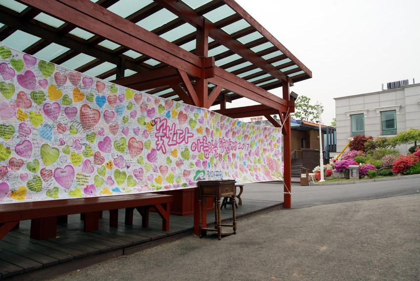 청아정 현수막에는 진한 그리움의 흔적들이 남아있습니다.