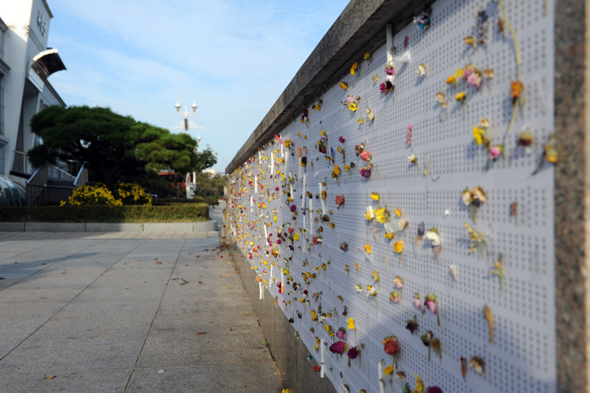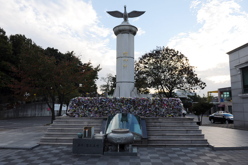 추석기간 다녀가신 10만 유족들께서 안치단에 붙여주신 추모꽃들을 어제 떼어냈습니다.