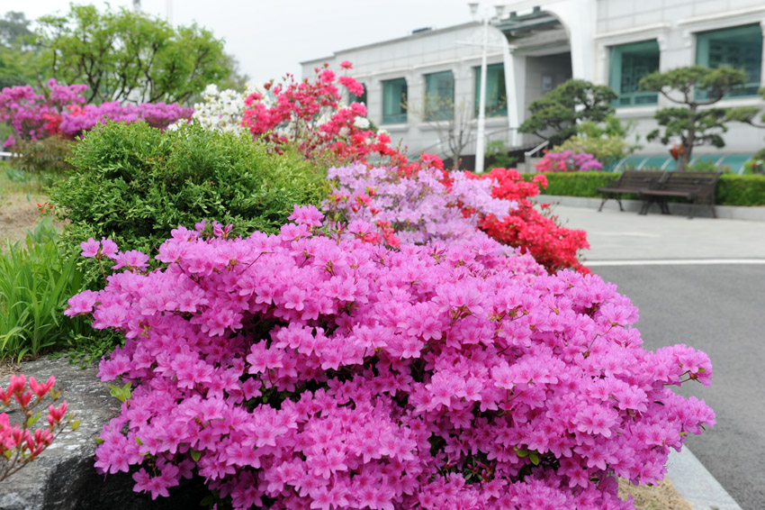 바야흐로 철쭉의 시간입니다. 광장에 동산에 어딜가나 피어있네요.