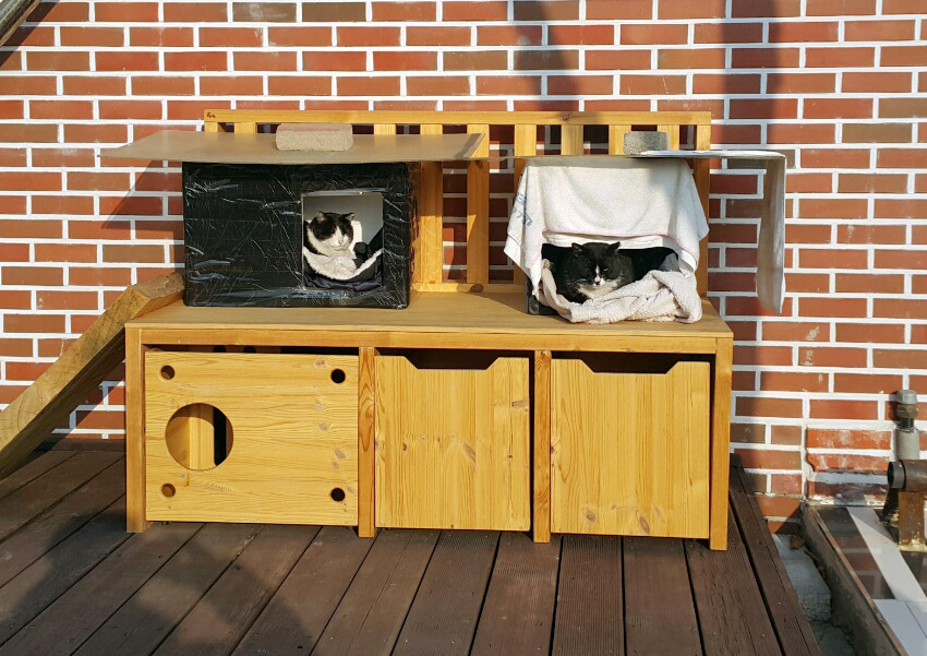 이래저래 신경 많이 쓴 집임을 알아주는지, 안에 쏙 들어가 앉아 따끈따끈 일광욕을 즐기는 아이들을 자주 볼 수 있는데요.