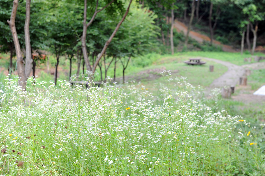 금계국이 진 청아동산에는 소박한 개망초가 흐드러지게 피어났습니다.