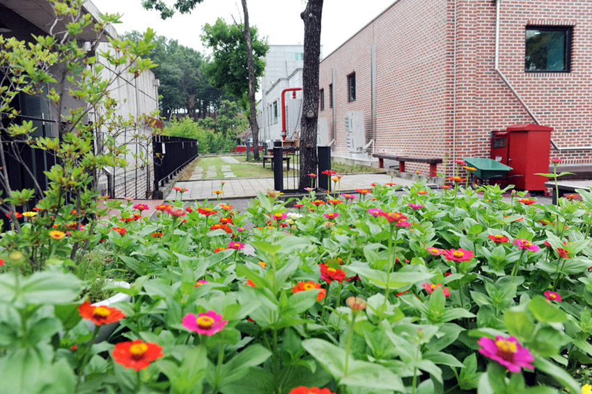 비움 앞 화단에는 백일홍이 울창하게 자리잡았습니다.