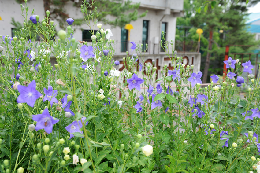 도라지꽃이 자리잡은 화단에는 전면주차를 해주시면 감사하겠습니다.