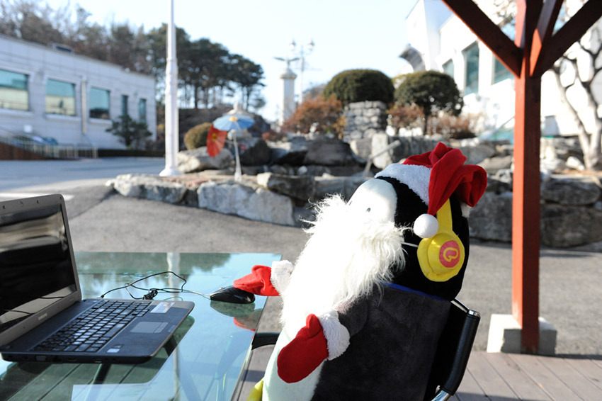 올해 진행하지 못하는 산타할아버지 행사를 대신해 청아정의 펭대리가 산타로 변신했습니다.