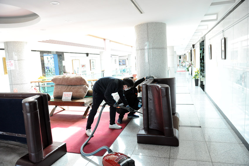 쇼파 쿠션들 한번씩 털어주고 구석구석 먼지들도 모두 제거하고 있습니다.