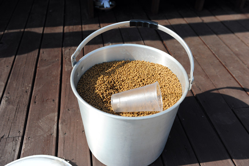 사료 몇포대를 부어야 될 정도로 큰 양동이입니다.