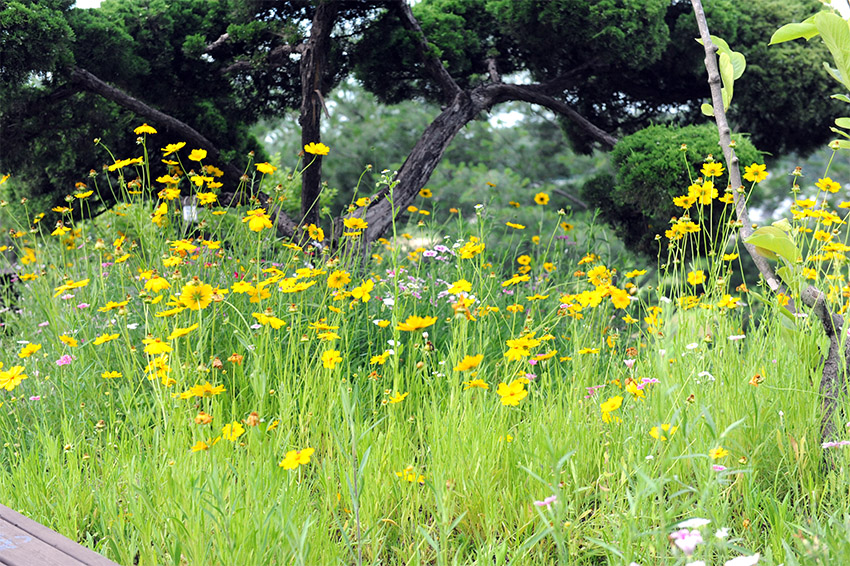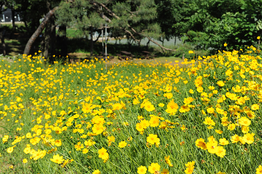 청아동산은 금계국 꽃길과 다양한 야생화들이 산책의 즐거움을 더해줍니다.