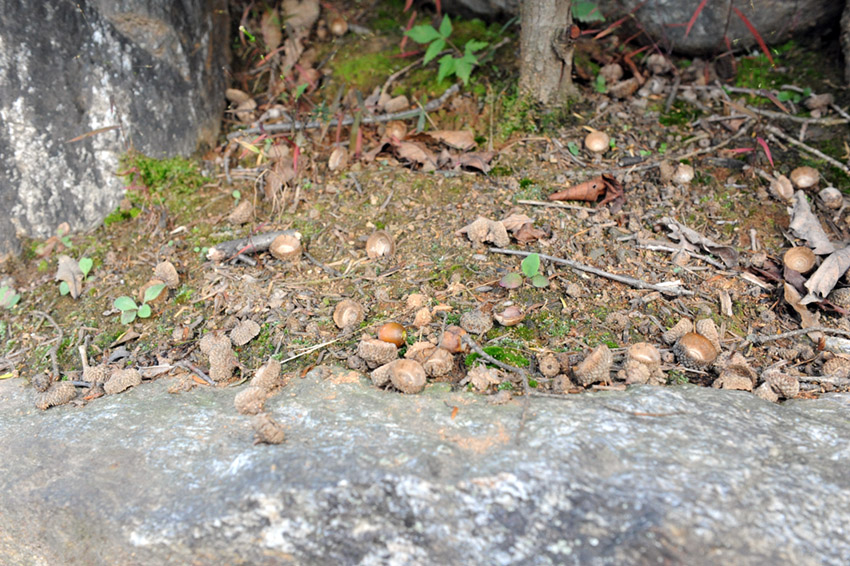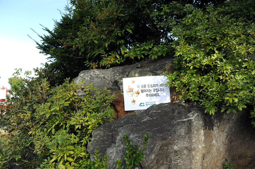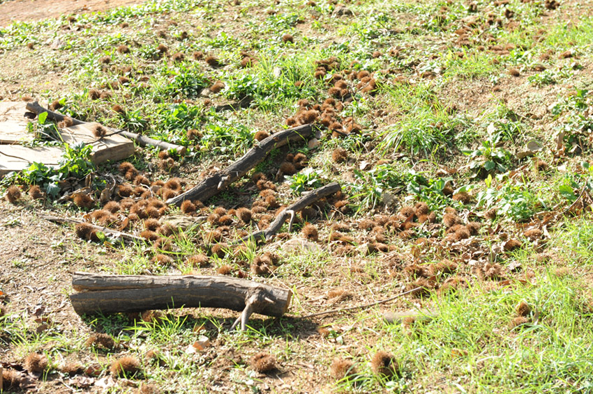 가을 내내 아주 많은 밤송이와 도토리들이 청아동산으로 떨어졌습니다.