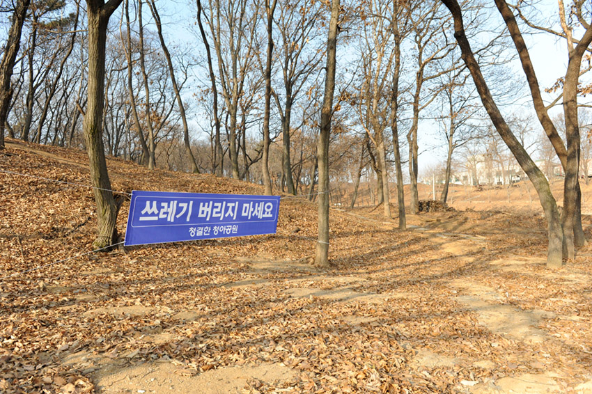 청아동산 산책길 입구에 「쓰레기 버리지 마세요」 안내현수막을 걸었습니다.