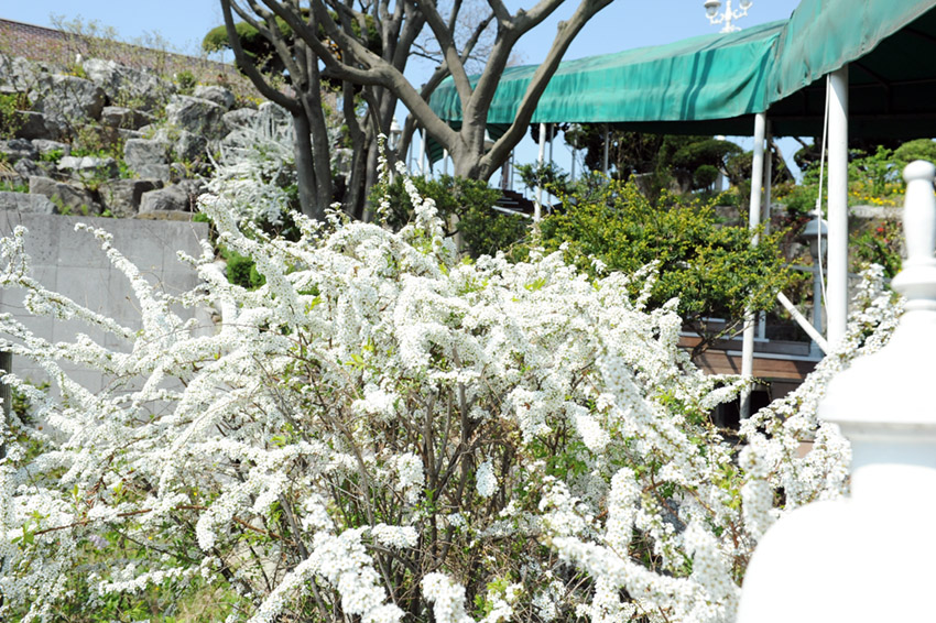 천국의 계단 옆, 순백의 조팝나무꽃은 보고있으면 황홀할 정도입니다.