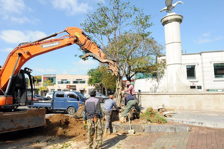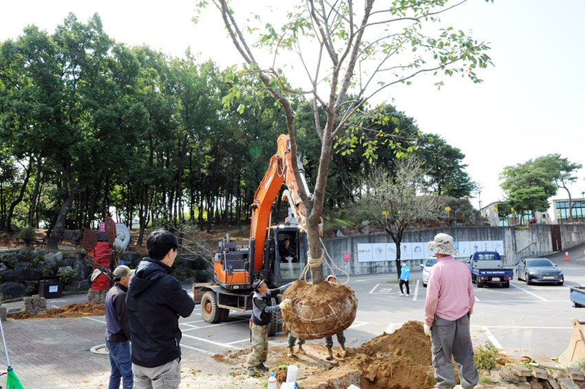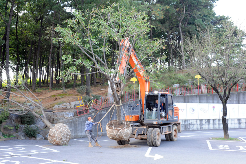 새로 이식한 나무는 청아동산 벚꽃길에 있던 나무들중 수형이 좋은걸로 선택한 벚나무들입니다.