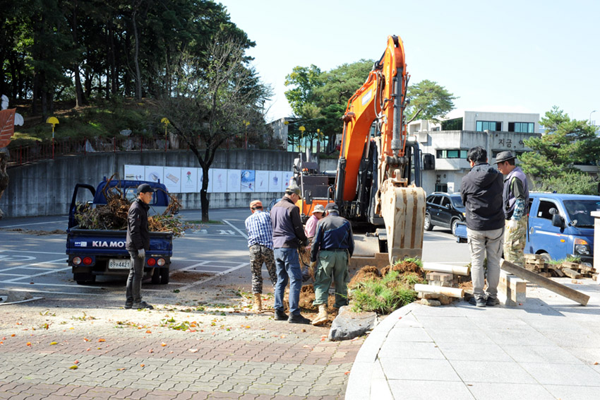 벚나무 이식작업과 함께 소나무, 회화나무등 주변 나무들 전지작업도 함께 진행했습니다.