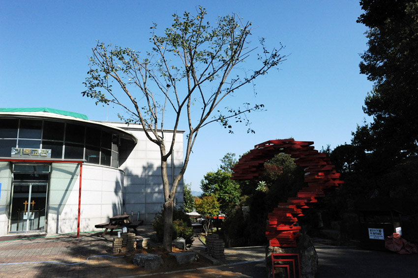 한그루는 청아비 바로 옆, 한그루는 물음표 옆 나무를 새나무로 바꿨습니다.