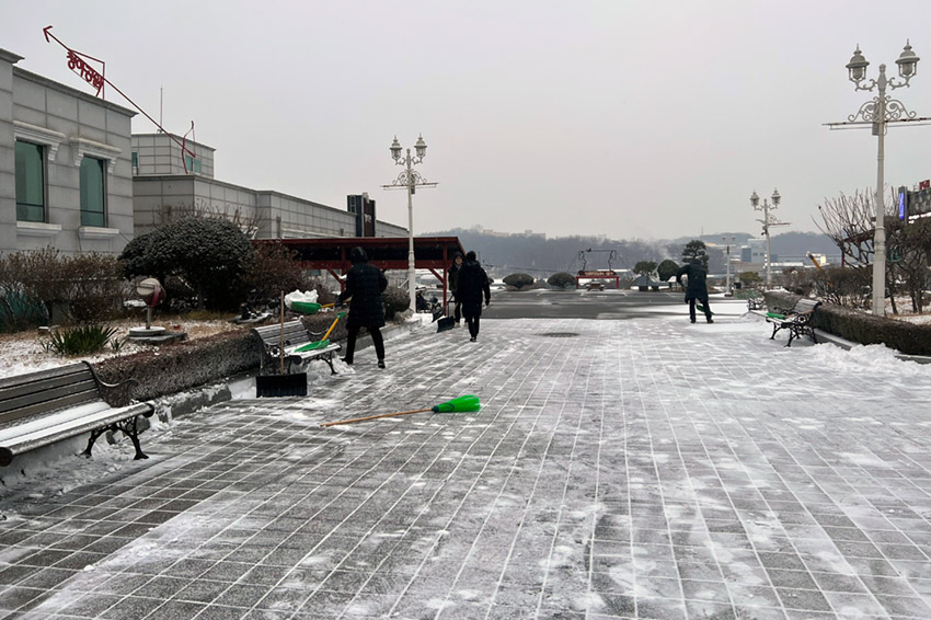 광장, 주차장을 비롯해 공원 구석구석 깨끗하게 치우고 빙판길 없는지 점검했습니다.