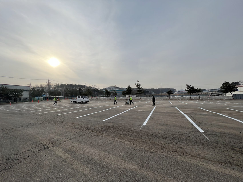 설 연휴를 앞두고 주차장의 주차라인을 새롭게 칠했습니다.