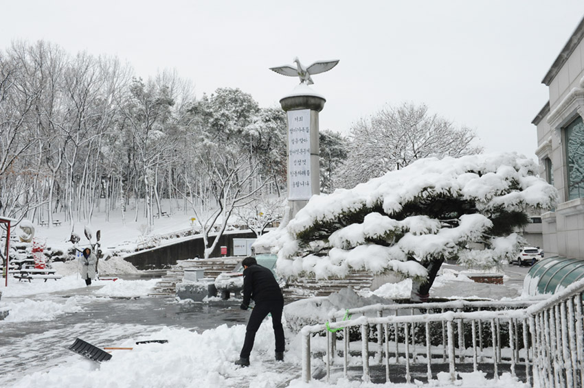 추모하시는데 불편하지 않도록 이른 아침부터 열심히 눈을 치웠습니다.