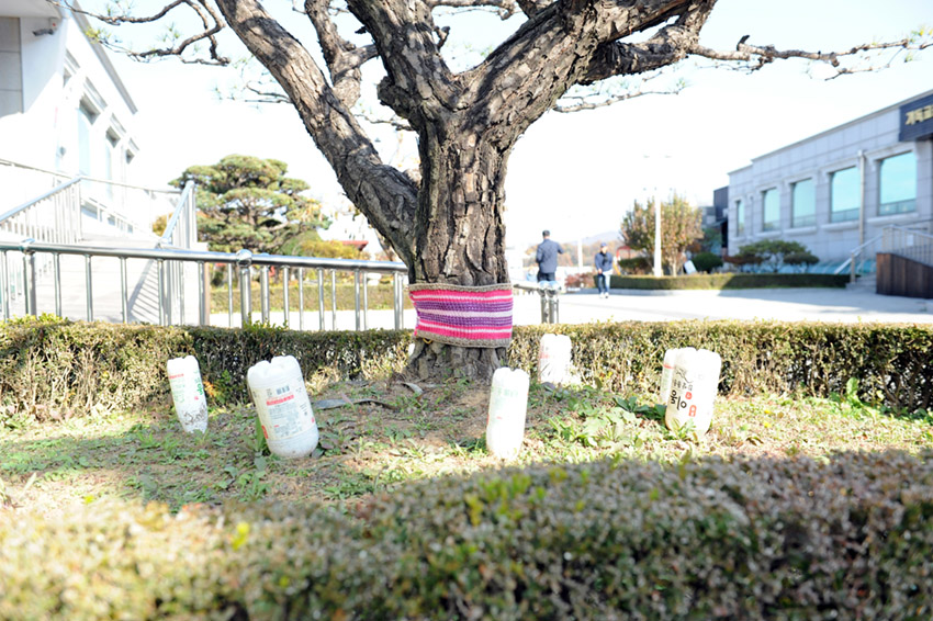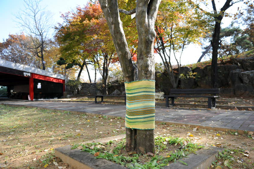 옷을 입혀두니 나무들도 따뜻하겠지만 보는 이들에게도 포근함이 전해지는 것 같습니다.