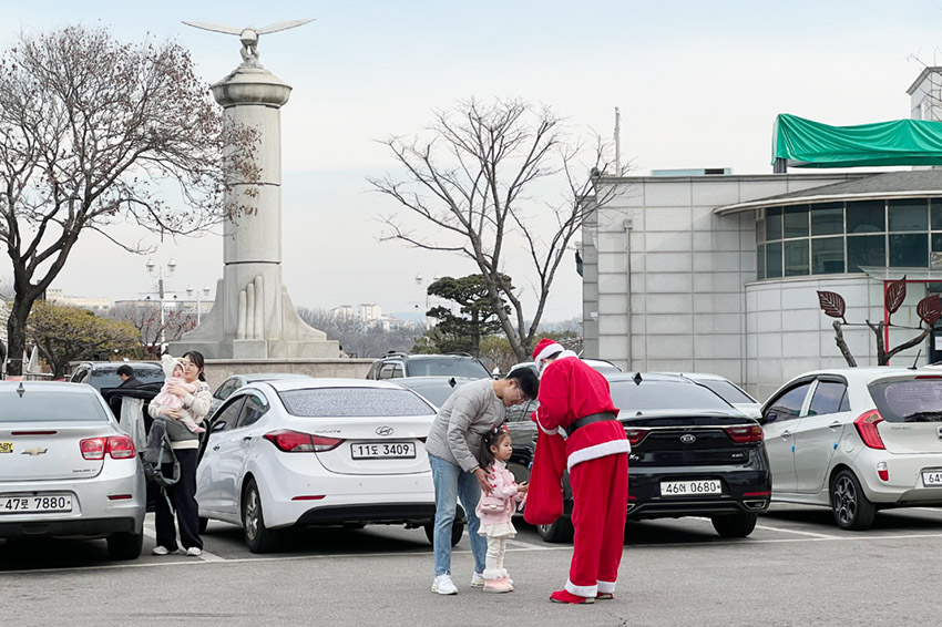 청아공원에서 산타할아버지께 선물받고 사진도 찍어가세요.