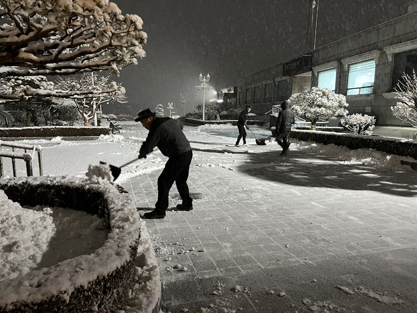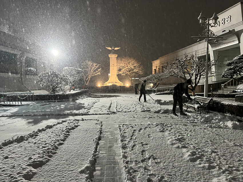 청아지기들 모두 일찍 출근해서 눈을 치우고 있습니다.