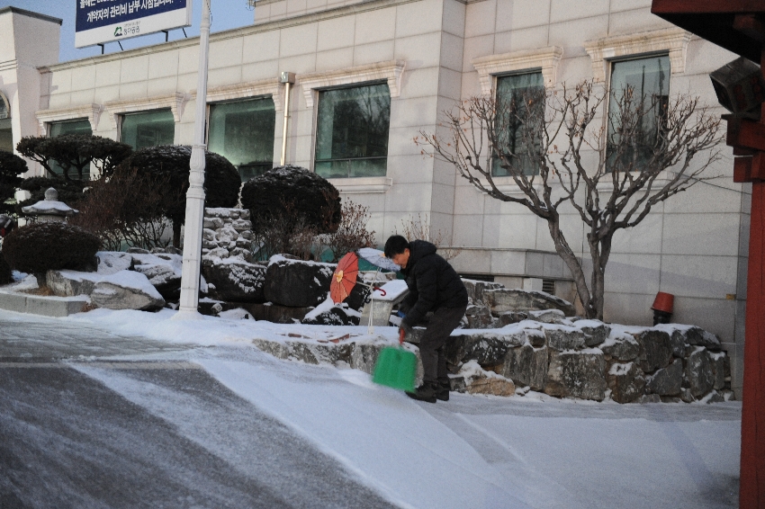 많은 양은 아니었지만, 청아지기들 아침 일찍 출근해서 제설작업 진행했습니다.
