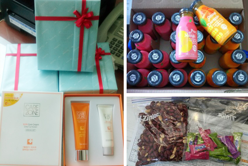 과일, 떡, 빵, 과자, 음료수, 화장품 등등, 때로는 술까지 선물종류도 참으로 다양합니다.