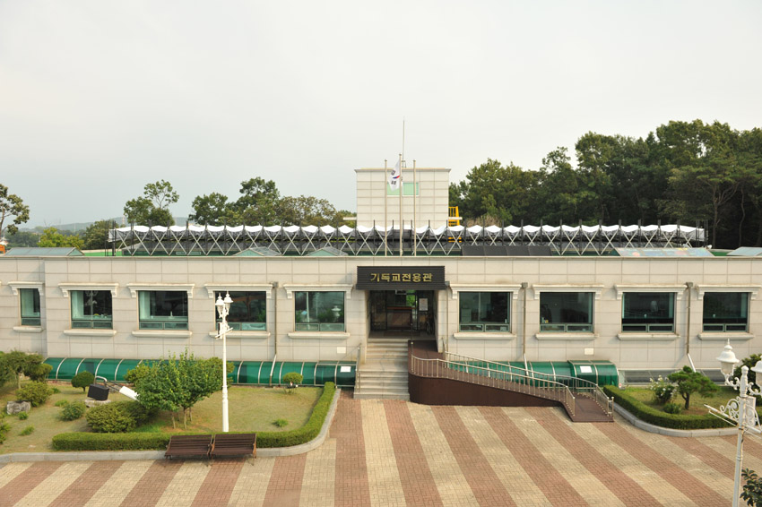 사진은 「청아의 날개」 라고 부르는 추모관 천창 햇빛가리개를 활짝 펼친 모습입니다.