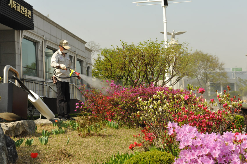 정원 진딧물 방제작업