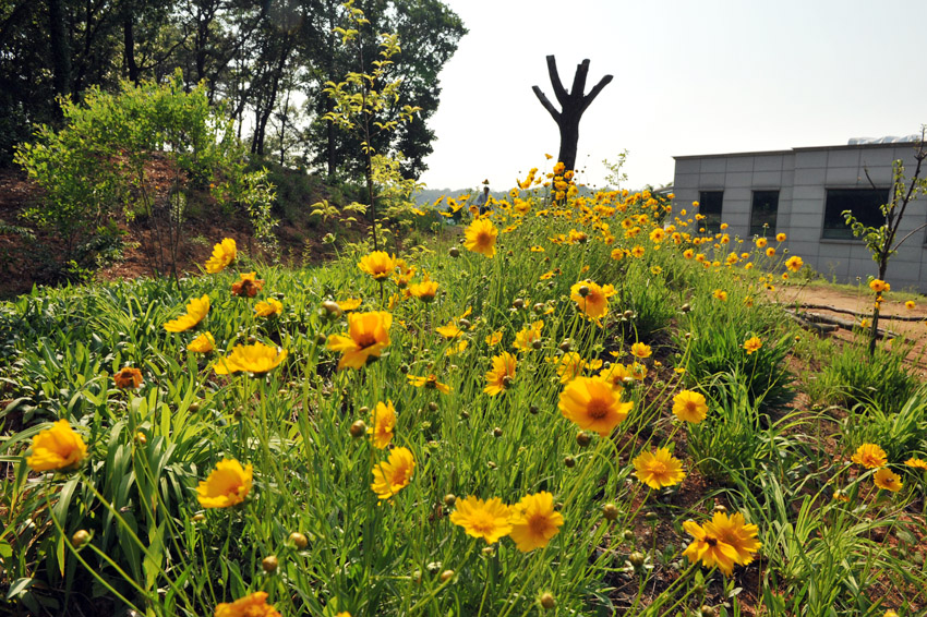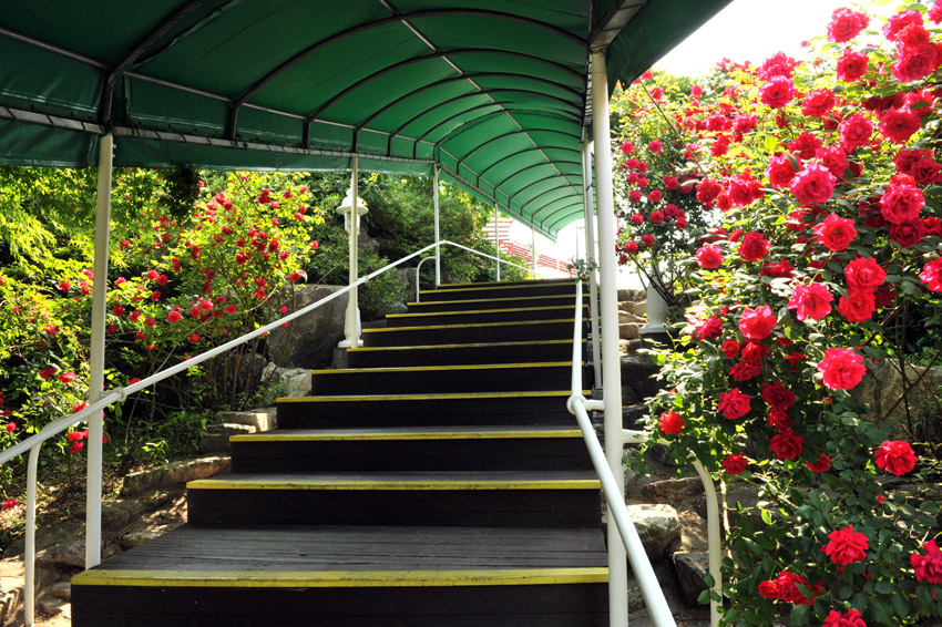 천국의 계단에 활짝핀 장미꽃과 청아동산을 수놓은 금계국의 화려한 모습입니다.