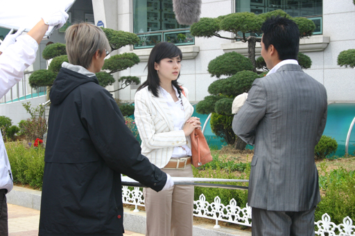 나오는 장면을 촬영중. 연기 장면을 상의중.