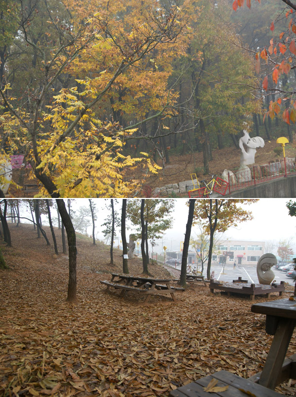 휘몰고 찾아오는 가을비때문에 청아동산 일대는 낙엽으로 뒤덮였습니다.
