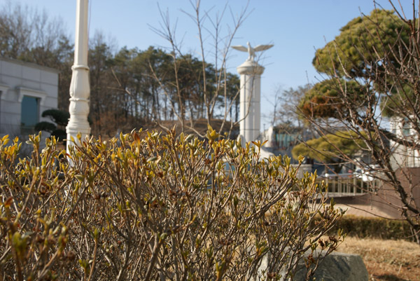 남쪽에는 매화소식이 여기는 목련나무에 꽃망울이 보이고 있습니다.