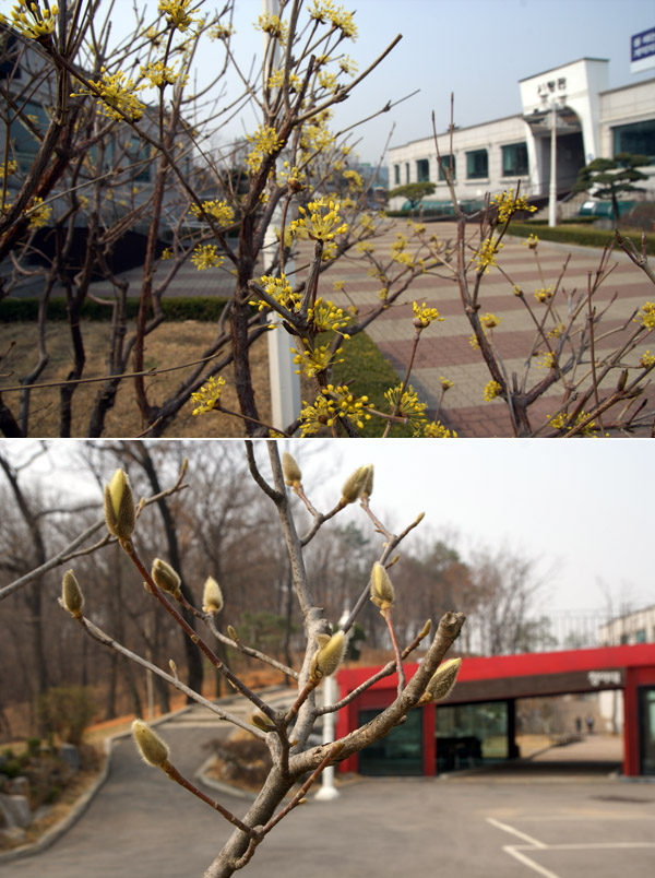 산수유와 홍매화도 꽃망울을 터뜨리고 있습니다.