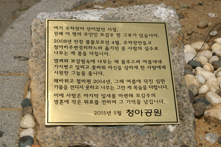 해바뀌고 철바뀐 2014년, 그해 여름에 닥친 심한 가뭄을 견디지 못하고 나무는 그만 제 목숨을 다합니다.
