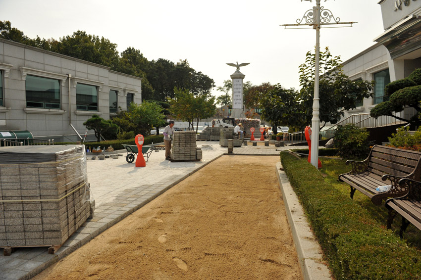 바로 청아공원의 중심인 청아비 앞 보도블럭들을 새것으로 교체하는 공사입니다.