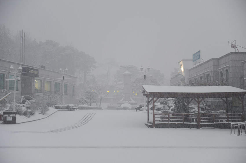 계신 곳에 눈이 오나요, 청아공원은 폭설입니다.