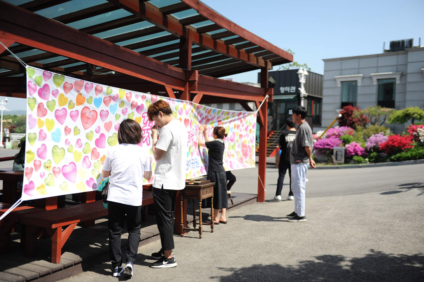 청아정에 현수막과 필기구를 준비해뒀습니다.