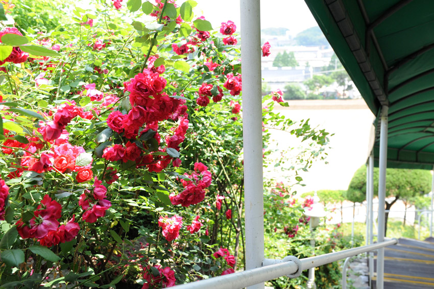 천국의 계단에는 예쁘게 피어난 장미꽃이 유족들을 맞이하고 있습니다.