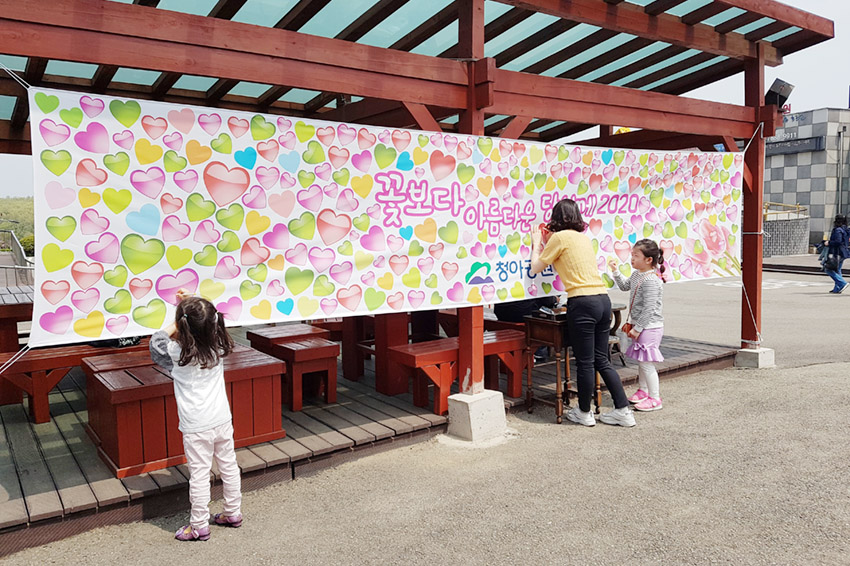 청아정에 큰 현수막과 필기구를 준비해뒀습니다.