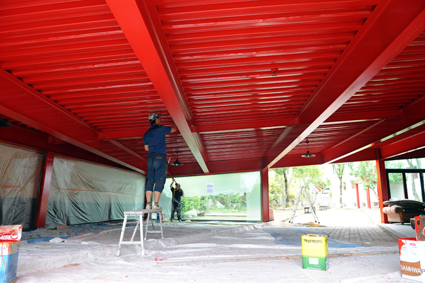 옥상 방수페인트 작업을 시작으로 추모관 내부 도색을 거쳐 외부 작업까지 모두 끝냈습니다.