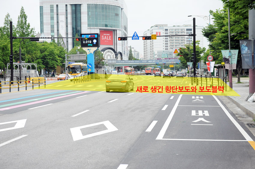 횡단보도와 이어지는 보도블럭이 깔리면서 구조가 바뀐 부분이 있어 안내말씀 드립니다.