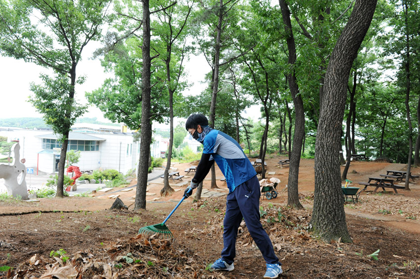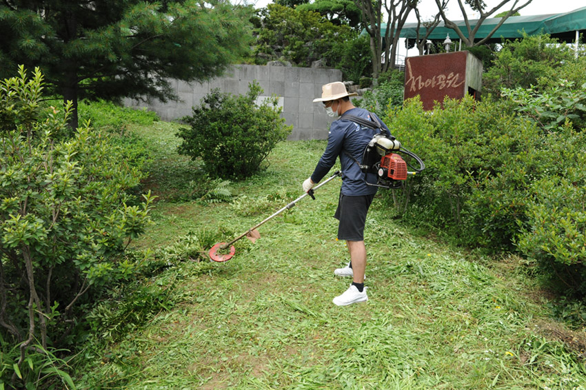 제초작업과 함께 켜켜이 쌓여있던 낙엽들까지 싹 치우고 있습니다.