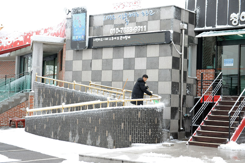 눈이 많이 내려도 추모길 불편하시지 않도록 깔끔하게 치우겠습니다.