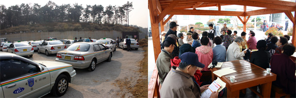 어르신들이 방문하실때 이용하신 교통편은 개인택시 30여대.